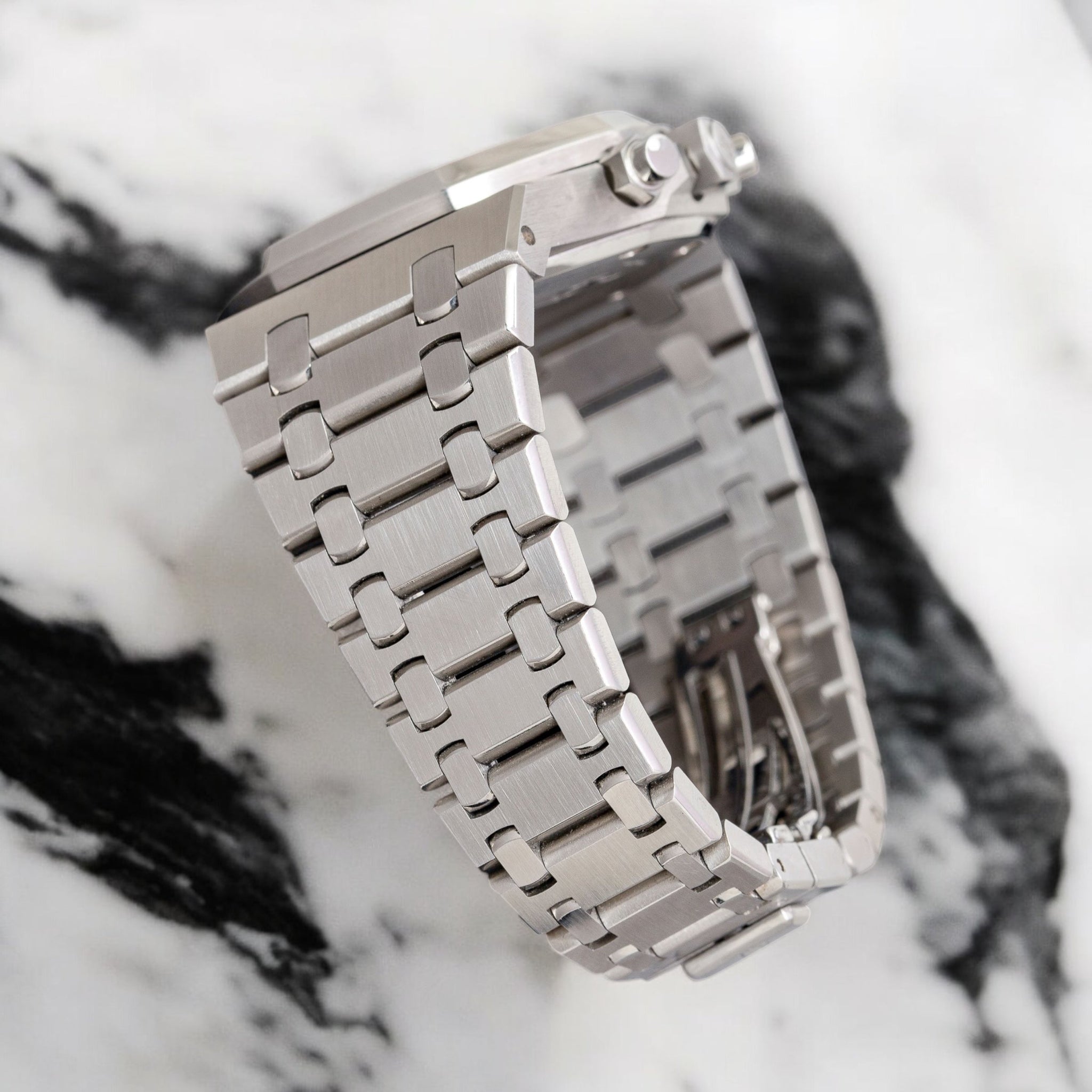 Notre Seiko Mod Royal Oak Chronograph allie sophistication et performance, inspirée des designs iconiques, parfaite pour se démarquer avec élégance.
